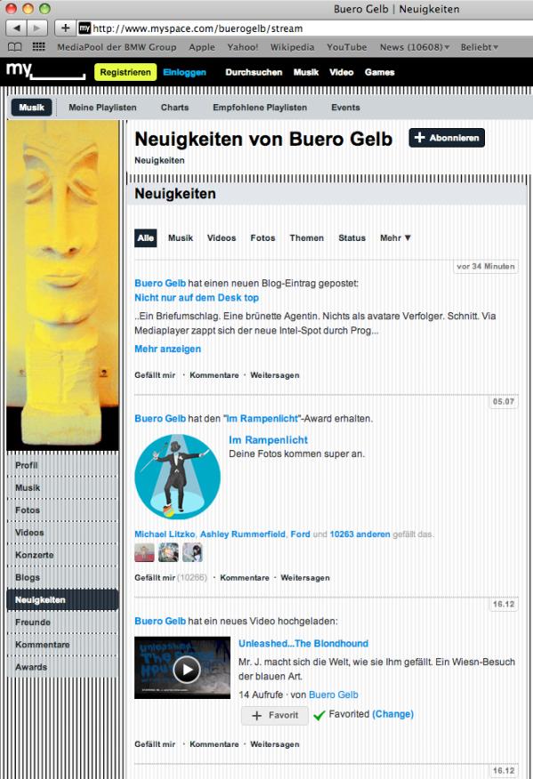Und verfolgt ein neues Prinzip: belohnen! Ganze 17 Awards gibt es für die MySpacer. Buero Gelb macht mal wieder den Anfang – und tütete fast nebenbei die „Im Rampenlicht“-Auszeichnung ein. Kein Wunder: Die coolen Party-Pics haben auch einen Award verdient.